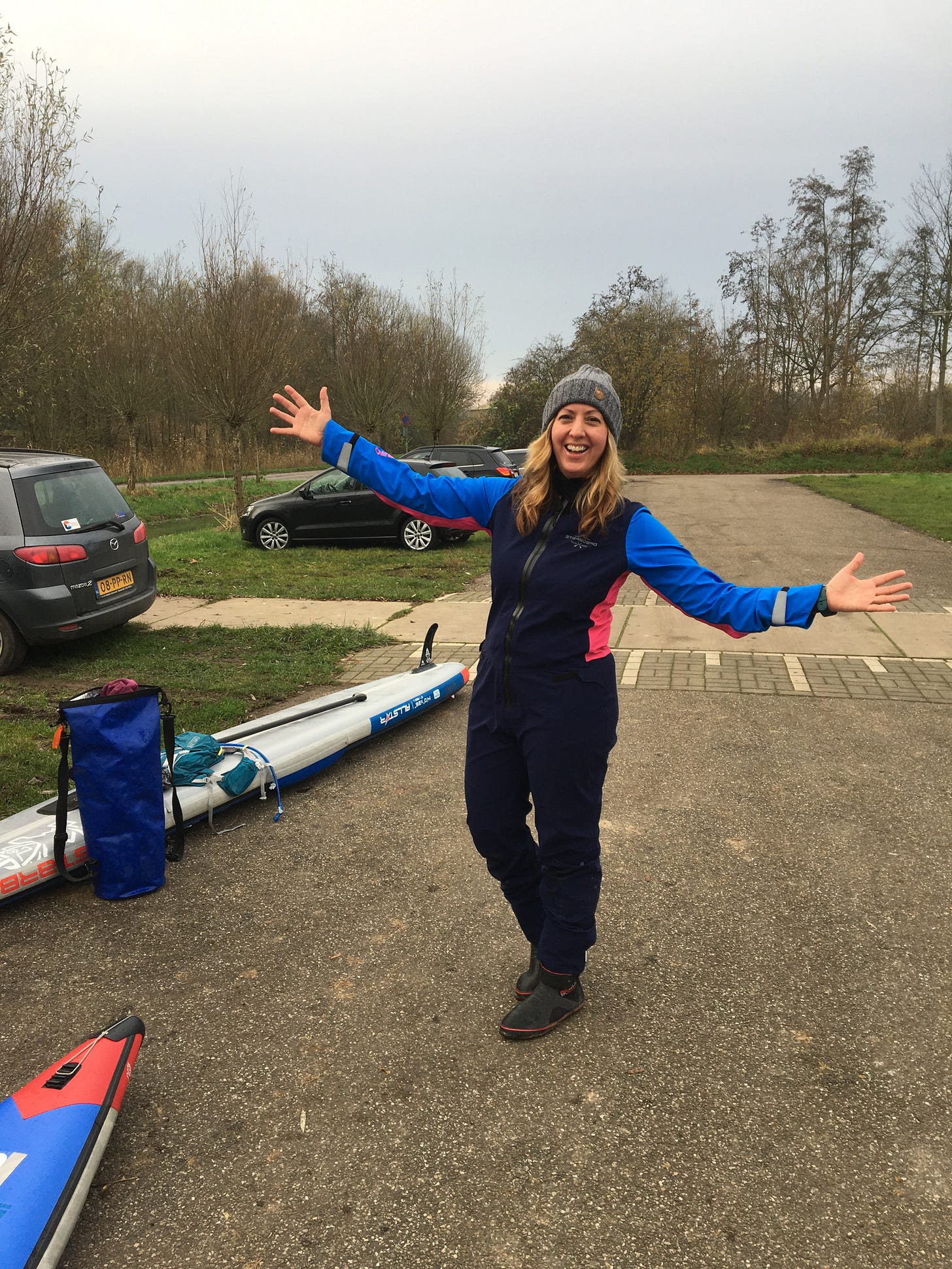 In The Netherlands, I used a Starboard SUP suit paired with neoprene socks, wool socks, and waterproof boots. It didn’t have enclosed feet, so layering was essential.