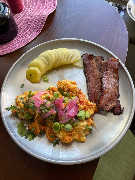 Soon after, Zoë started sending me photos of her own meals. They looked like something straight out of an Anthony Bourdain travel special—beautiful, colorful, and clearly made with skill. Turns out, all those years I had No Reservations and The Layover playing on TV might have been excellent parenting after all.