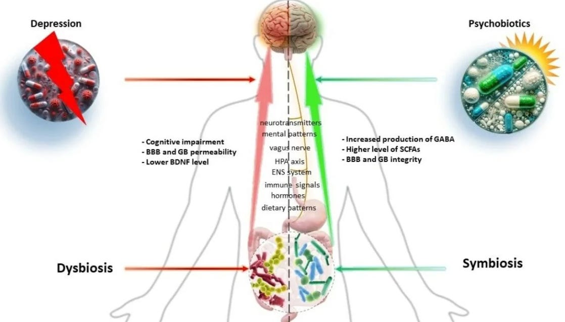 One of the most compelling developments in microbiome science is the study of psychobiotics—microbial strains that influence mood, anxiety, and cognitive function via the gut–brain axis. Communication between the gut and brain occurs through the vagus nerve, immune mediators, microbial metabolites, and neuroendocrine signaling pathways.5