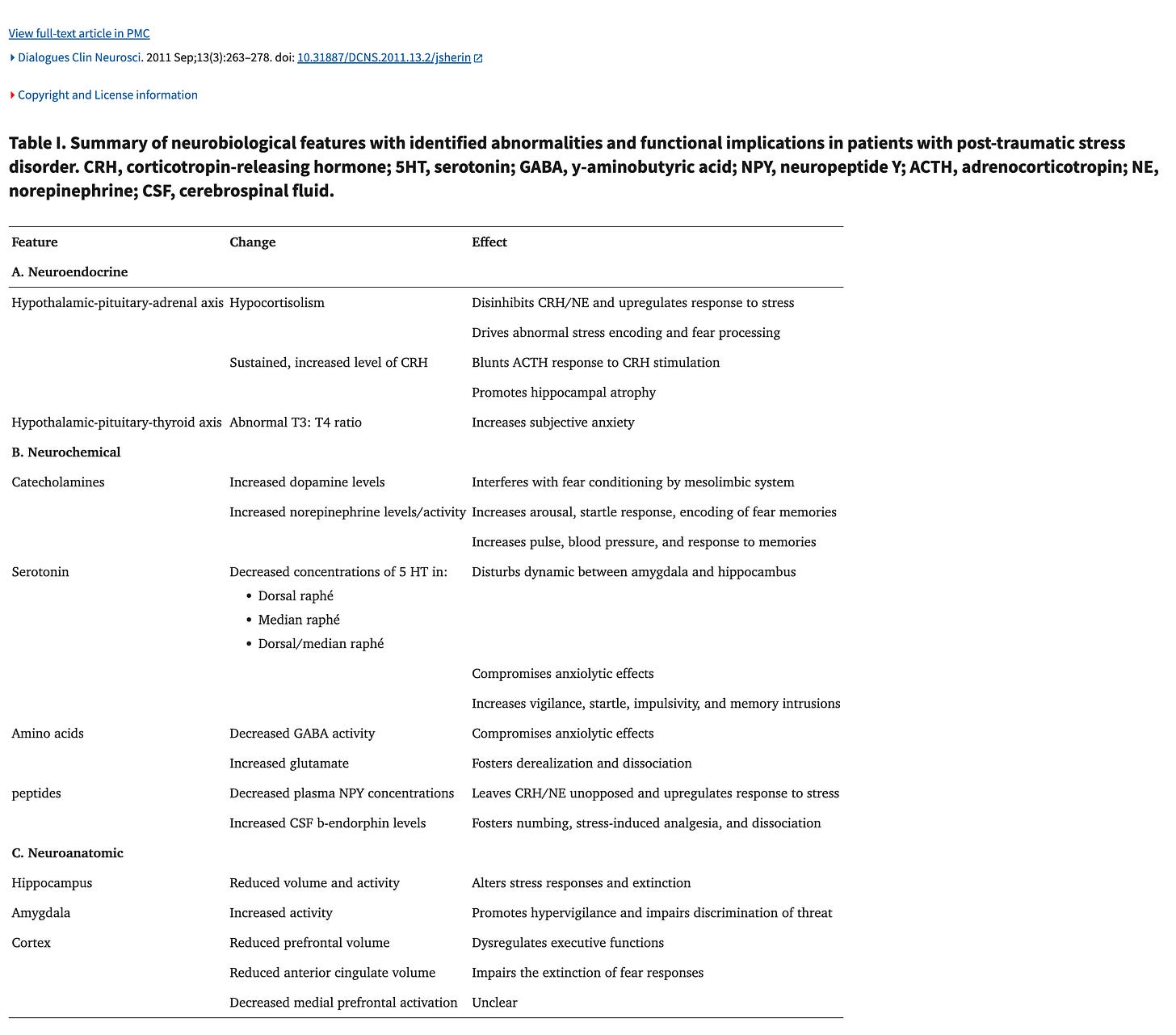 Sherin, Jonathan E., and Charles B. Nemeroff. “Post-Traumatic Stress Disorder: The Neurobiological Impact of Psychological Trauma.” Dialogues in Clinical Neuroscience 13, no. 3 (September 2011): 263–278.